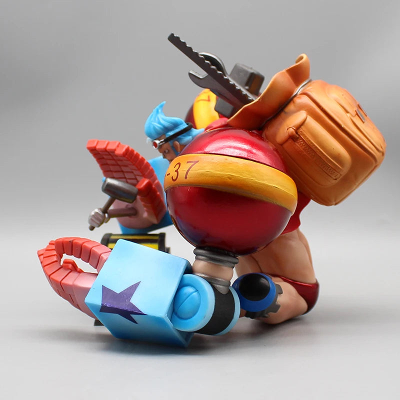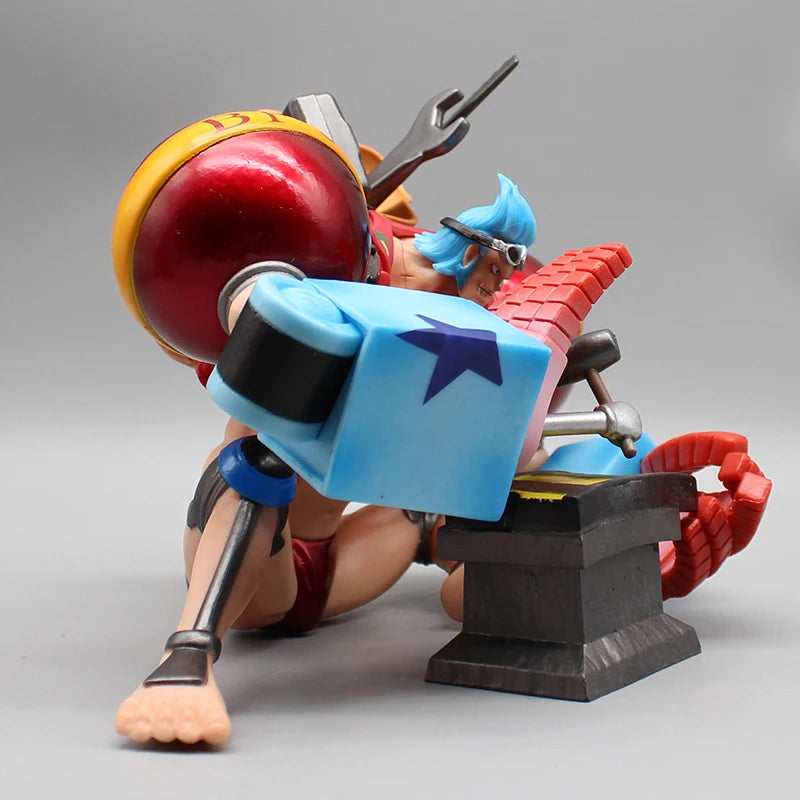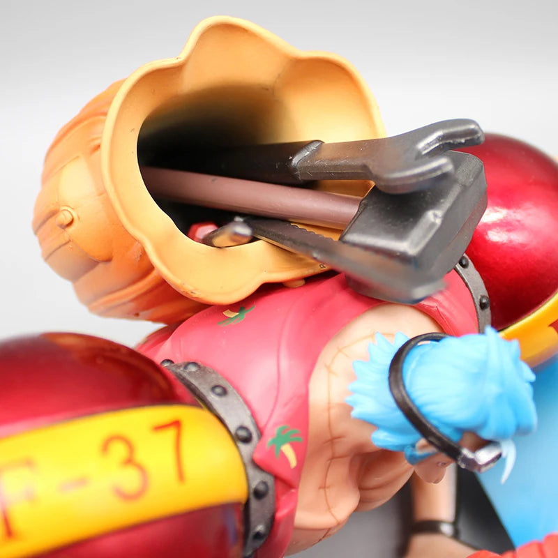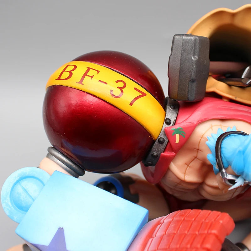 La sculpture met en valeur les bras mécaniques caractéristiques du BF-37, ses cheveux bleus hérissés, ses lunettes d'aviateur et sa pose d'attaque emblématique qui reflète parfaitement le charisme et la brutalité de Franky au combat. Le socle intègre des détails mécaniques qui subliment la scène, lui conférant un réalisme et une présence accrus dans toute collection.
