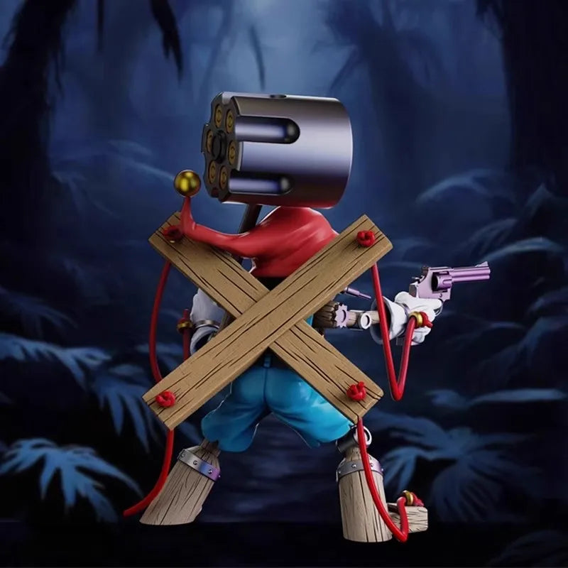 Puppetmon, the Dark Masters' most sinister puppet Digimon, arrives in this detailed figure from Genesis Studio. With his spinning hammer and revolver, this 9cm figure captures the character's wild essence. Ideal for Digimon Adventure fans and discerning collectors.
